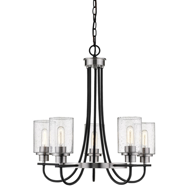 5 Light A Lamps 100W 25.5 in. Matte Black/Brushed Nickel Chandelier, No bulbs included, UL Listed and Hardwired