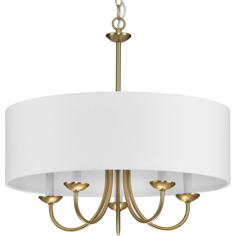 Freshen your home decor with a chandelier from the Drum Shade Collection. Light sources glow from within a crisp white textured fabric shade that gives a country-casual feel to this classic light fixture. The gently curving arms are coated in a beautiful brushed bronze finish. Compatible with dimmable bulbs.