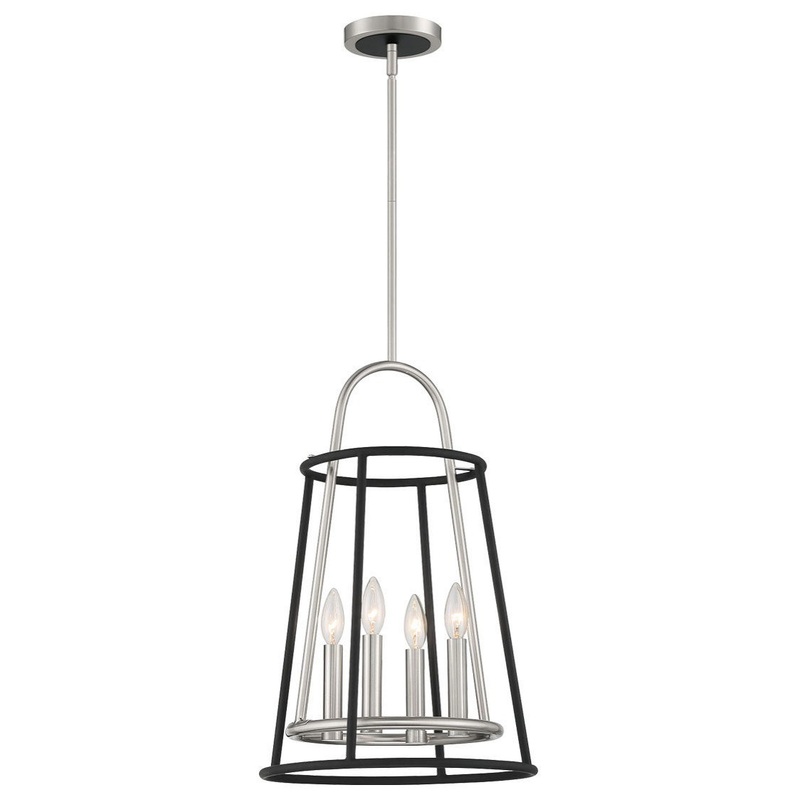 A matte black frame encircles satin nickel lamping. The high contrast between the dark black and light nickel finish is softened by the rounded frame and edges. With its open cage design, the Campana collection retains a lofty quality, ideal for various sp