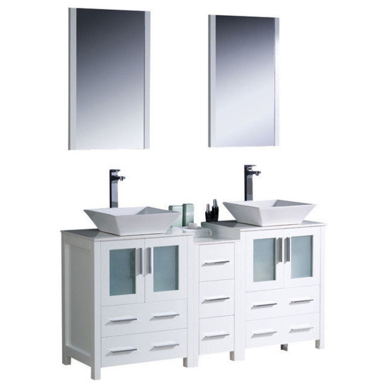 60″ White Modern Double Sink Bathroom Vanity w/ Side Cabinet & Vessel Sinks, 60″W x 18.13″D x 35.63″H – Contemporary – Bathroom Vanities And Sink Consoles – by Unique Online Furniture