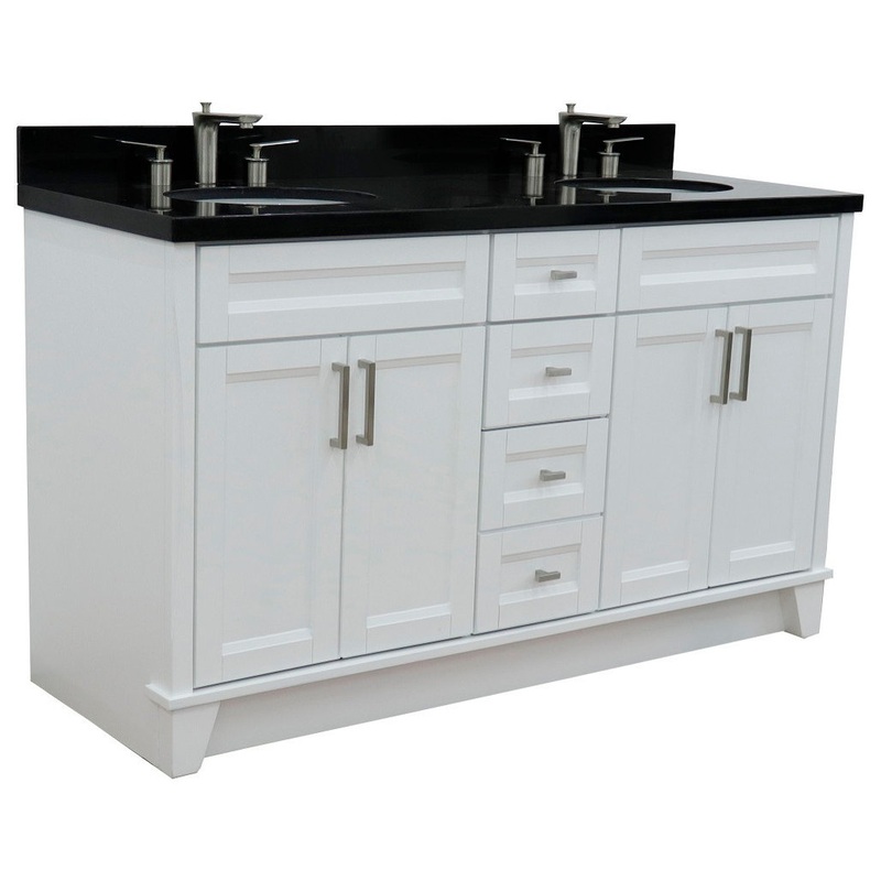 61″ Double Sink Vanity, White Finish And Black Galaxy Granite And Oval Sink – Transitional – Bathroom Vanities And Sink Consoles – by Bellaterra Home