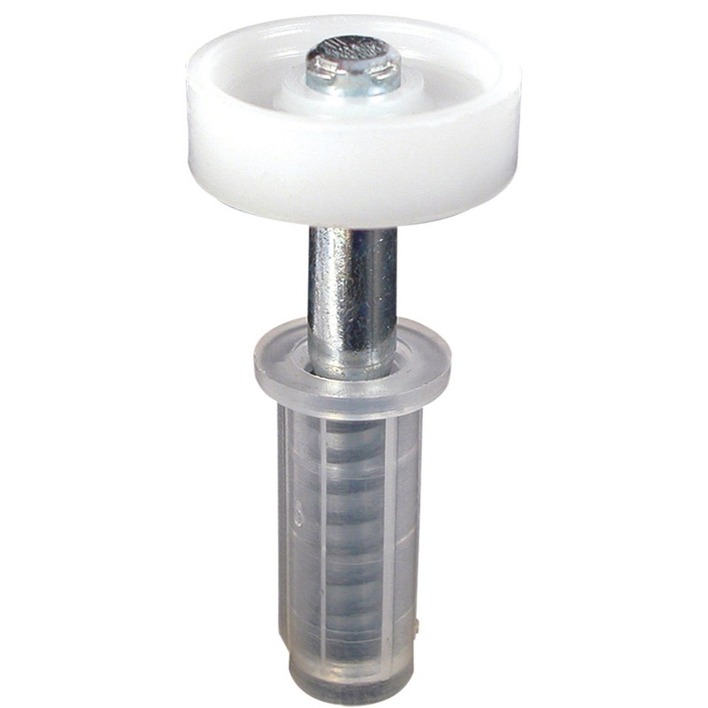 These bi-fold roller guides are constructed of steel, nylon and plastic components. They are commonly used with Kenna Frame bi-fold doors, but a variety of other manufacturers also use this same size guide. These spring-loaded roller guides feature 7/8 in. outside diameter wheels that are 1/4 in. thick with a 3/8 in. outside diameter base. These guides mount on the top edges of bi-fold doors and require only a 3/8 in. diameter hole in which to insert. Use these top-mounted guides where rollers are missing, damaged or not working properly, to restore bi-fold doors to the ease of operation they were designed to have.