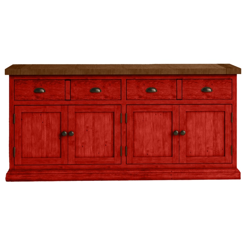 -Please view secondary photo for color option being chosen -Please be advised that natural rustic wood can cause color variations -Brown Solid Wood Plank Top -12" deep interior half shelf -2 Drawers -4 doors -Solid Rustic Wood -Fully Assembled -Made in Ame
