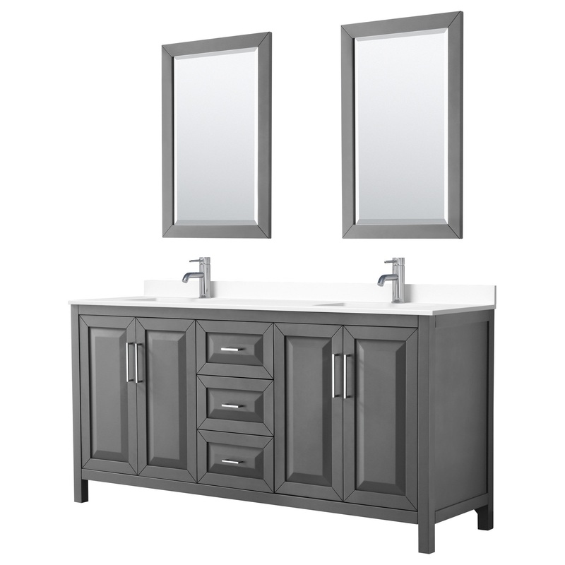 72, Double Vanity, Dark Gray, White Marble Top, SQ Sinks, 24, Mirrors – Transitional – Bathroom Vanities And Sink Consoles – by Wyndham Collection