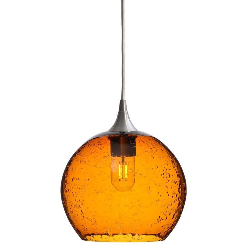 The Lunar Pendant Form No. 768 features a hand-blown recycled glass globe with a four-watt LED filament bulb. The bubbles are added by hand and add to the fixture’s individual nature. It is reminiscent of the moon’s surface and has an effervescent quality to it. This design works well in many different styles of decor including traditional, transitional, beach style or contemporary, and is perfect as a single pendant or displayed in groups.
