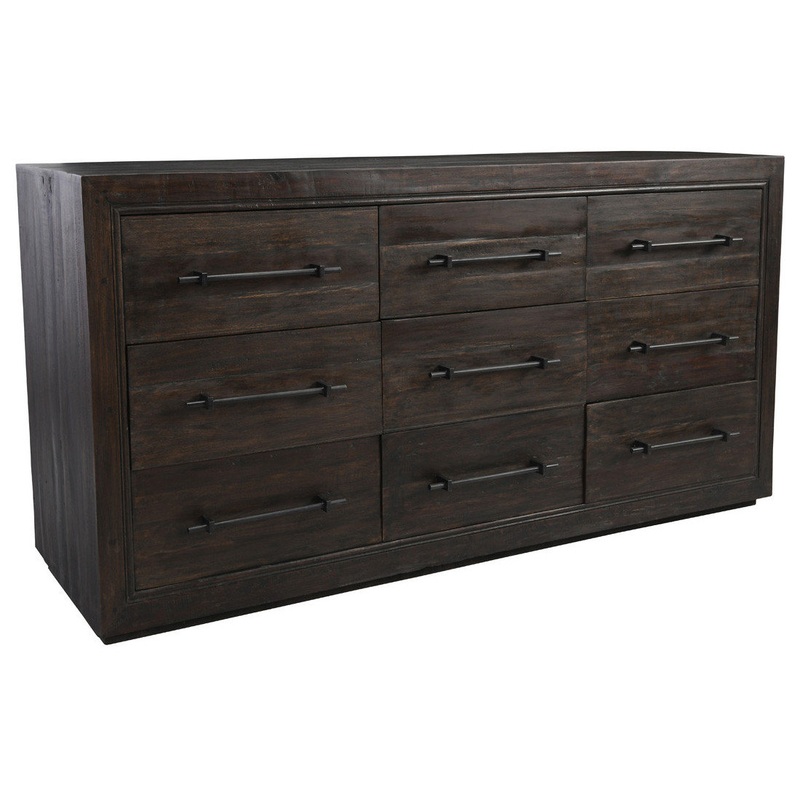 -78w 20d 36.75hThe large Magdalena dresser is constructed from reclaimed mango wood and accented with iron hardware. With its deep dark brown finish, this chest of drawers will add storage and character to any space. -Cleaning Instructions: Wipe with a dam