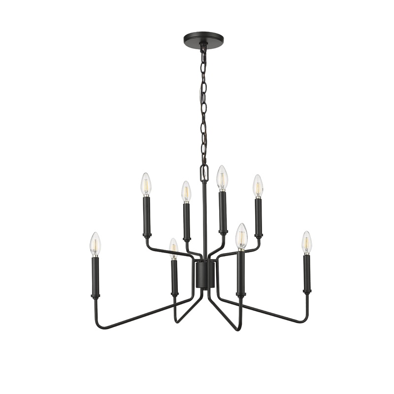 The Raven Collection is a minimalist delight designed to make a striking statement. The angled, offset arms tier upwards with sleek simplicity, creating a soaring abundance of light, perfect for any dining or gathering area. Finished in either matte black or polished nickel, this collection of chandeliers is available in both 8-light and 10-light options.