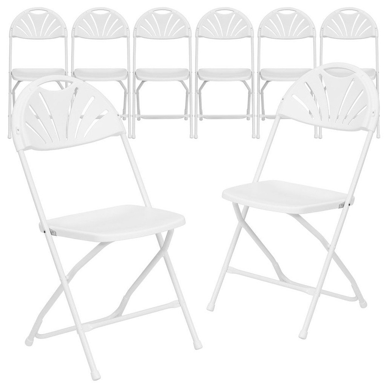 Plastic folding chairs are the choice of many event planners for their lightweight design, ease of cleaning, and versatility among events. This fan back chair will be great for hosting outdoor events and in the home for additional seating. The textured seat ensures safe and comfortable seating. After an event you can stack them on top of each other or in a row.