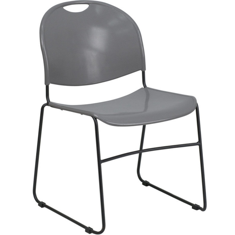 Acquire seating for any environment with these versatile sled base stack chairs. The ergonomic design contours to your body for an amazing seating experience. Host parties and game night at your home keeping extra seating on hand that can be placed in a corner, stacked until your next gathering. Line these chairs up for a uniform look in your conference center, training room or business center. After conferences these chairs stack neatly in your storage room, up to 35 high to clean the event space. Transport by the carrying handle or on our compatible sled base stack chair dolly when moving to different locations within the building. Add comfort to your home, hair salon, office, waiting room, lunchroom, classroom or adult education center with these heavy-duty plastic stack chairs. [RUT-188-GY-GG]