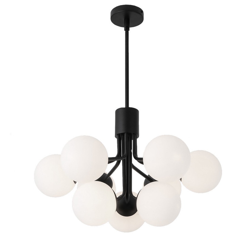 9 Light Halogen Chandelier, Matte Black with Opal Glass