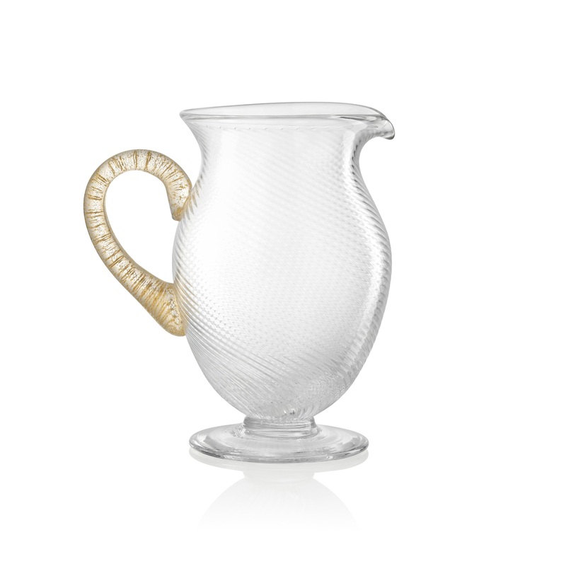 Astunning piece of serveware that is designed to add a touch of elegance and sophistication to your dining table, the A/81 Pitcher from Nason Moretti is a must-have for your next formal dinner. Handcrafted from the finest quality glass, this pitcher features real gold foil accents on the handle for an elevated design. Use for serving water, iced tea, or your favorite sangria and watch the compliments roll in.