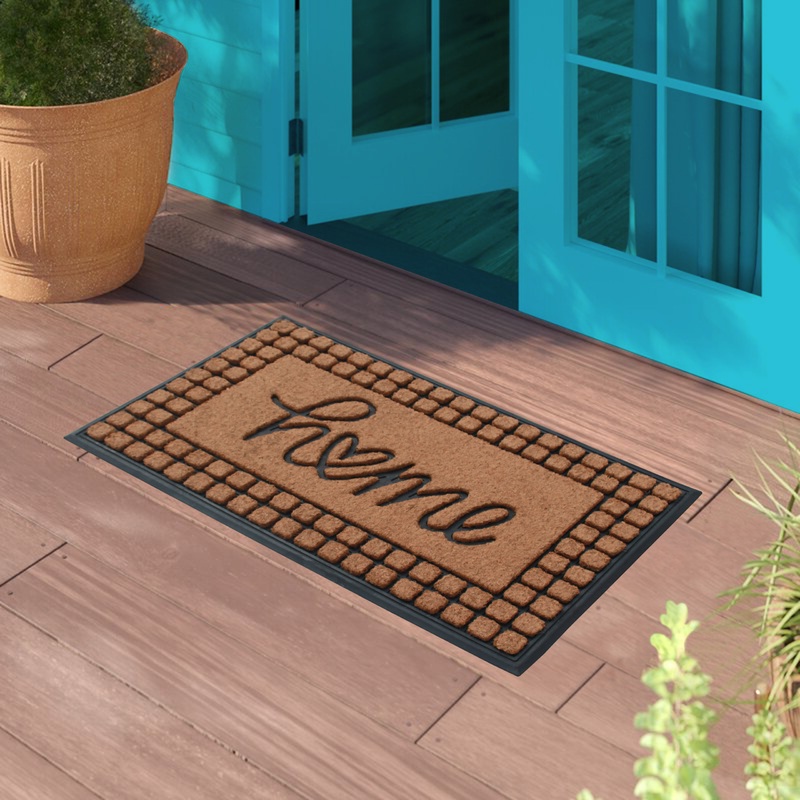 Keeps your floor clean when you decorate your entryway with this contemporary doormat, which includes a sturdy rubber backing to help in keep the rug in place & prevent slips. The attractive design of this rubber Doormat creates a welcoming entrance for your guests & the durable coir material holds up to lots of foot traffic. Recommended for outdoor use in covered areas. Vacuum or shake the mat regularly for longer life.