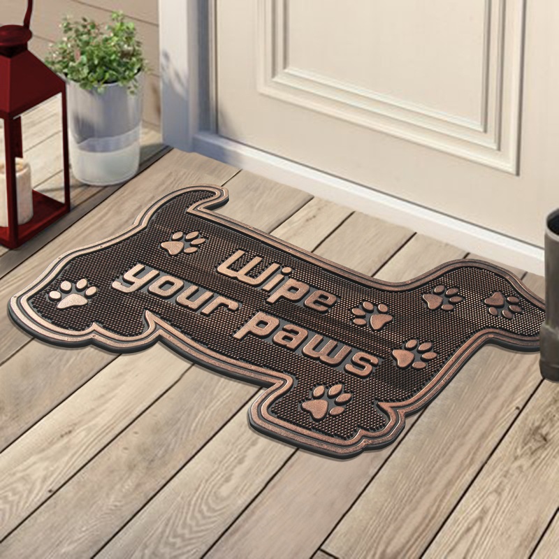 This stylish and unique doormat makes a perfectly fun addition to any porch, patio area or door. Use this mat to catch dirt as your guests enter your home or as decoration to show off your love of felines. This door mat withstands seasonal changes and can be used outside all year long. This transitional style copper and black rubber door mat is the perfect way to spruce up your floors and home decor while maintaining a level of practicality.