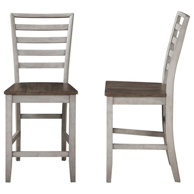 The Abacus Counter Chair represents relaxed casual styling in a two-tone smoked alabaster and honey finish. The ladderback design features a wooden seat that is shaped for comfort. The transitional style works well with farmhouse, contemporary or transitional styles and the neutral finish complements many interiors. Pair with the Abacus Counter Collection or use in a kitchen or other counter height area. Your purchase includes two counter height chairs.