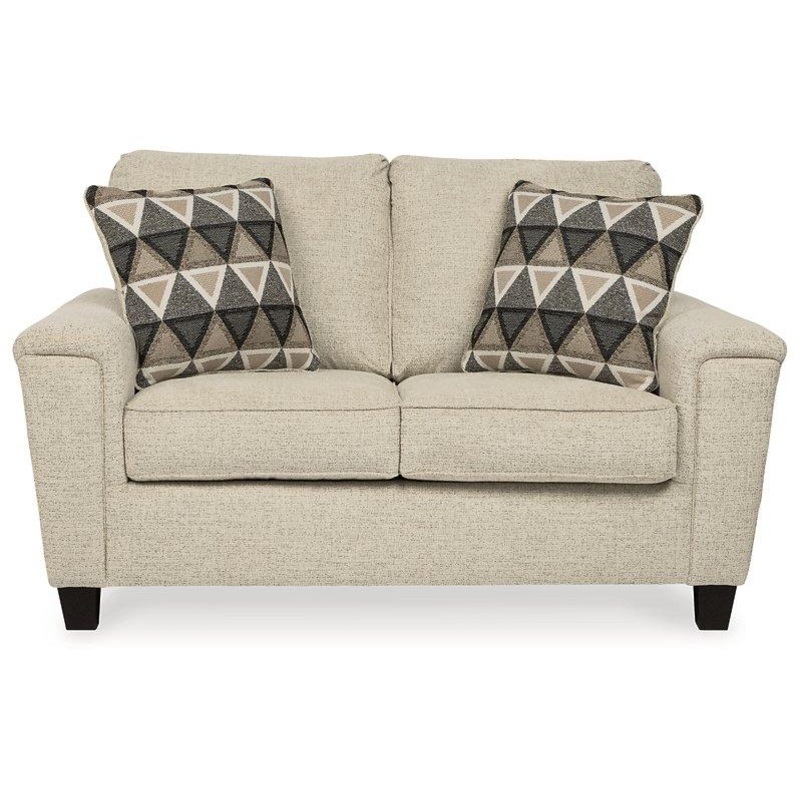 If youre looking for a smokin hot look priced to entice, youre sure to find this space-conscious, budget-conscious loveseat beautifully fits the bill. Covered in a smoke gray chenille upholstery loaded with plush texture, this less-is-more contemporary loveseat is dressed to impress with angled side profiling and track armrests wrapped with a layer of pillowy softness for that little something extra. Crisp and clean, the 2-over-2 cushion styling adds up to one sensational look.