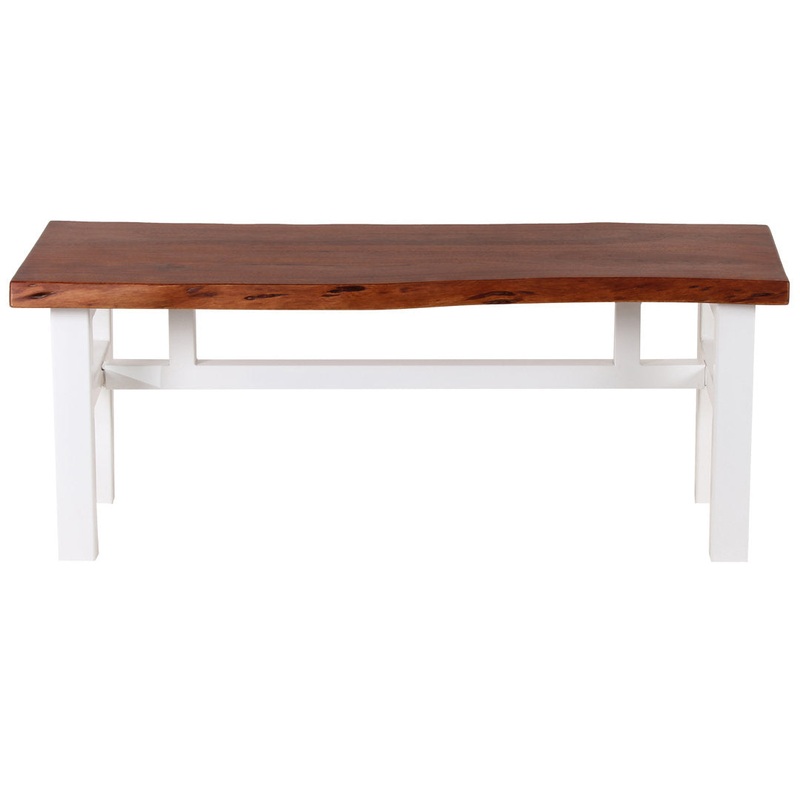The Loon Peak Acacia 46-inch Live Edge Bench is a beautiful addition to any dining room or kitchen. Perfect for seating at the family table, this Acacia Bench also works in the entryway as a place to put on your shoes and get the kids ready to leave for school, or in the living room as a coffee table where space is tight. This bench features a stunning 1.5-inch thick wood top made of solid acacia wood, and sturdy metal legs and base. The Acacia top features a live edge on both the long sides for a unique and natural shape. Combine the Loon Peak Acacia Live Edge Bench with the Loon Peak Acacia Live Edge Dining Table to create a gorgeous family dining set that will be the centerpiece of any home. Handcrafted in India the Loon Peak Acacia Wood Collection features stunning hardwood with a beautiful natural variation that shows off the exquisite natural wood grain. Using real, all-natural wood means each item has a unique, one-of-a-kind pattern, with distinctive color variations and textures. Acacia wood is a beautiful hardwood species that is both durable and naturally water-resistant even when untreated. With simple and routine care, the hard-wearing and long-lasting material will look great for decades. Acacia wood is so durable it has even been used in shipbuilding, so It can easily stand up to the messiest family dinners and most competitive family game nights. With a glowing warm cherry tone and a natural, beautiful grain, household items that are made with this stunning wood really catch the eye. Loon Peak Color/Pattern: White/Brown