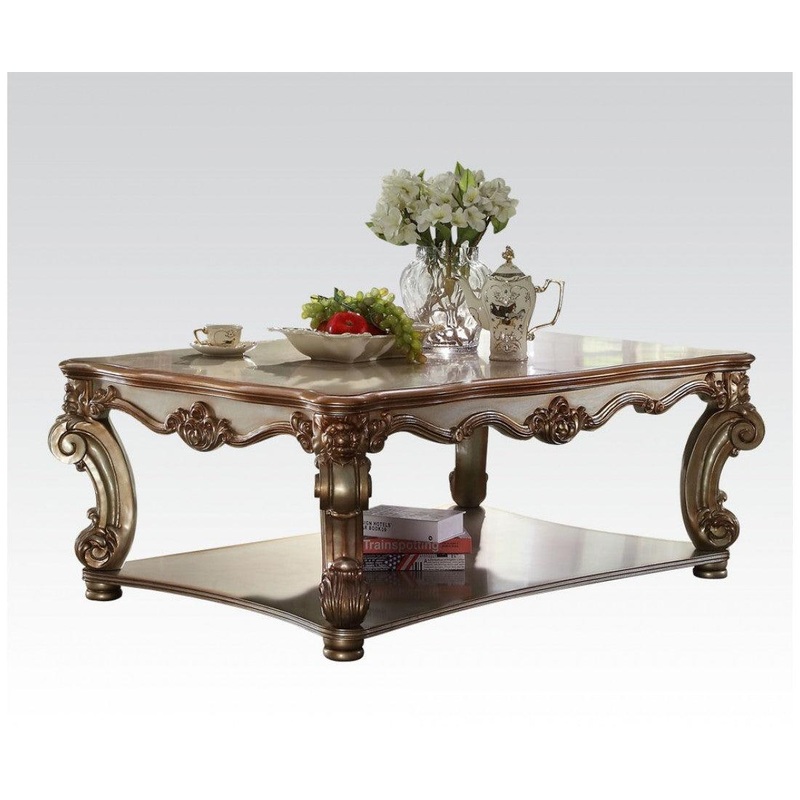 Only 1 left in stock! Vendome Collection by ACME Crafted from solid Poplar, cherry veneer Wood Top Solid Wood Leg Poly Decoration Rectangular Table w/Bottom Shelf