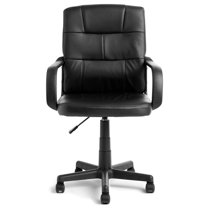 -Tufted leather effect is contemporary and stylish and can be used in any room -Sturdy armrests for added comfort -Adjustable lever for varying heights -Pneumatic seat height adjustable office chair -Spot clean -Weight capacity: 225 lbs -Dimensions: 23.4"L