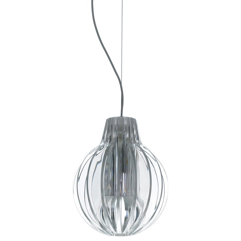 A new perception of the luminous object, with light, material and color interacting through a play of transparency, reflection, refraction and diffusion. The body spherical or elliptical of the lamp consists of ribs in injection-molded transparent methacry