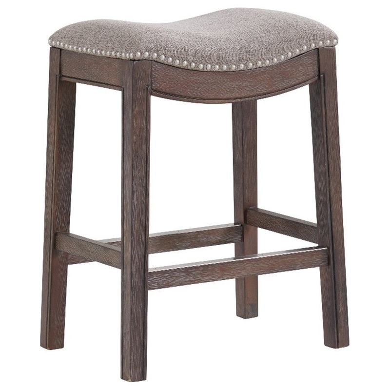 Add a touch of style to your home with this classic counter height stool. The legs are made from rubberwood for extra durability. The backless saddle seat is lined with nail head trim, while cushioned padding provides extra support when you need it most. Stretcher bars between the legs provide stability and comfort, and a metal kick plate protects the footrest from wear. This piece of furniture will put the finishing touch on your bar, kitchen island or tall bistro table.