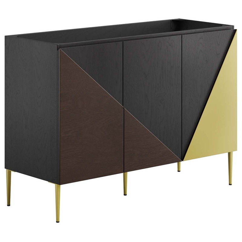 Dive into a fusion of sophistication and modernity with the sleek Alchemist 48″ Bathroom Vanity Cabinet. The meticulously constructed MDF structure, complemented by a stunning oak veneer and punctuated with stylish geometric overlays, exudes a unique blend of elegance and contemporary design. Designed for use as either a single or double sink vanity, this vanity cabinet stands on tapered metal legs equipped with non-marking foot pads, ensuring protection for your flooring. The practical yet stylish shelving area, complete with plumbing cutouts, presents generous storage for all your bathroom essentials. Assembly is required but detailed instructions are included, promising a straightforward setup. Sink basin and fixtures not included.