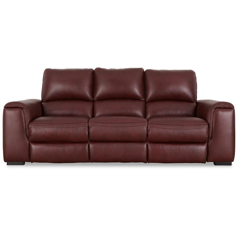 Impressive in scale while keeping an air of refinement, this power reclining sofa stuns with soft, supple leather match upholstery in garnet. Sink into the seating area and cater to your comfort with one-touch power reclining and an adjustable headrest. Co