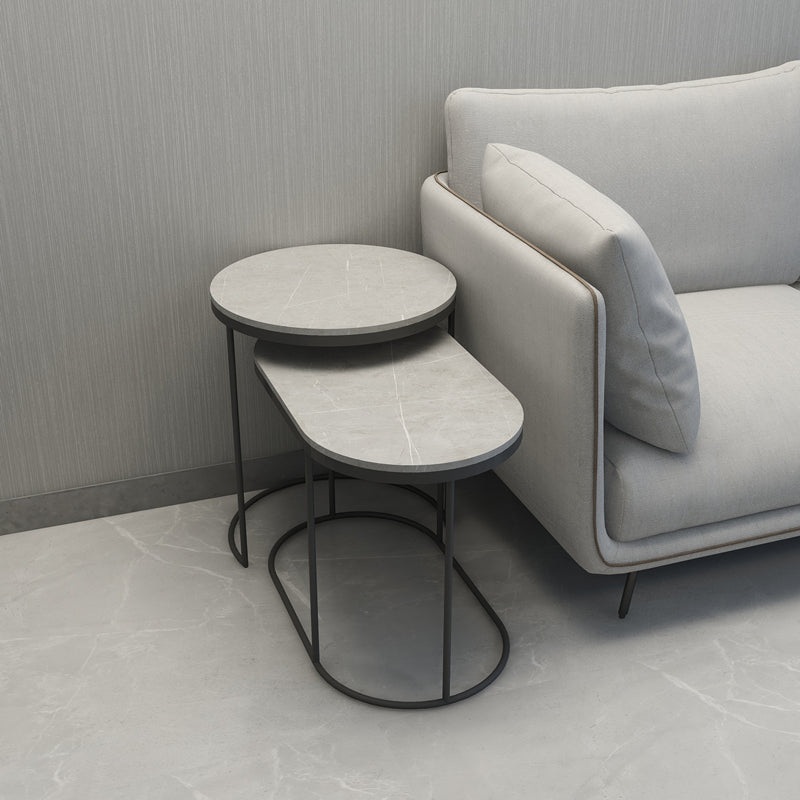ALEX Coffee Table Oval and Round Italian Minimalist Luxury Marble Rock Board use as side table , corner table for the living room sofa, or as side table small coffee table, simple wrought iron powder coated.Style: light luxuryColor classification: gray + b