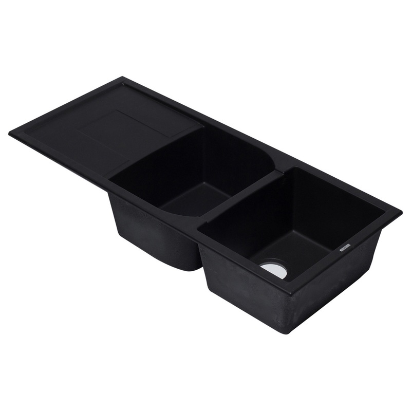 ALFI AB4620DI-BLA Black 46″ Double Bowl Granite Composite Sink with Drainboard, 46″ – Transitional – Kitchen Sinks – by Alfi Trade