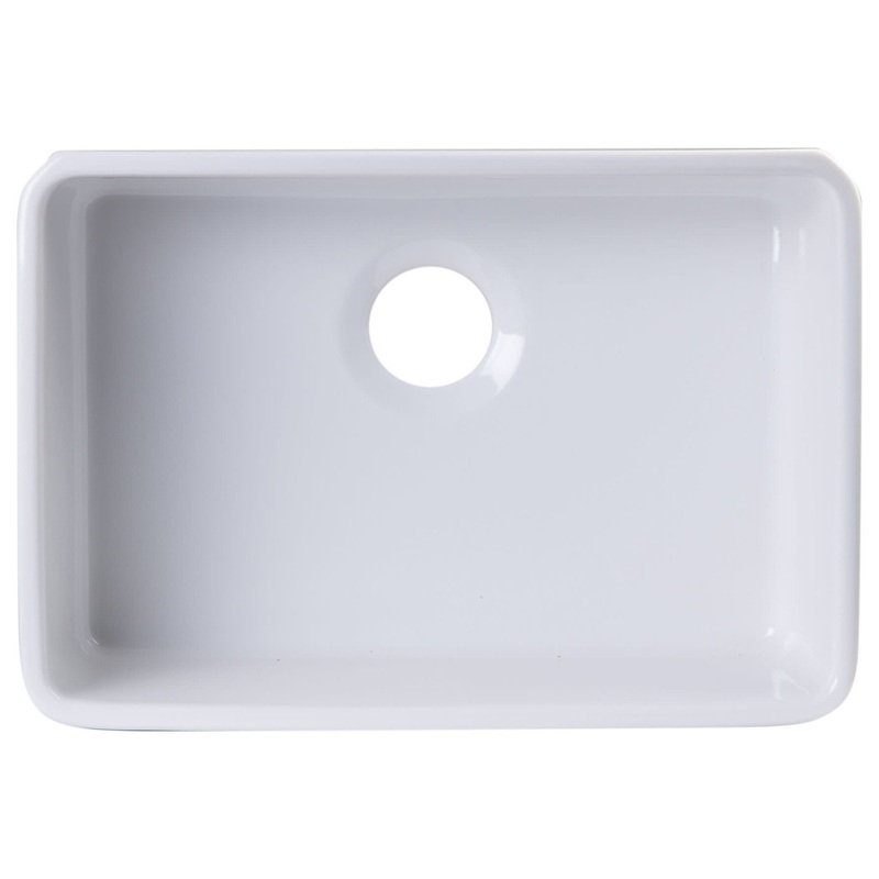 Mount the undermount installation kit (Model #: ABUMSB) to the inner side walls of your cabinet. We then recommend putting plywood on the rods to create a large smooth flat surface. Drill the necessary drain holes. If you did not purchase the kit you will need to create a custom support using 2×4’s. ALFI brand AB503UM Features: Covered under ALFI brand’s 1 year limited warranty against manufacturing defects and 10 year limited warranty against fading/ staining of the glaze Constructed of solid high-grade fireclay material, ensuring durability and longevity Single basin design provides maximum workspace Undermount installation Rear drain location increases workspace area in the sink as well as storage area underneath ALFI brand AB503UM Specifications: Length: 23-3/8″ (left to right) Width: 16-1/8″ (front to back) Height: 8″ (top to bottom) Basin Dimensions: 21-3/4″ L x 13-3/4″ W x 7″ D Drain Location: Rear Drain Connection Size: 3-1/2″