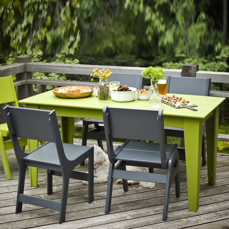 This modern outdoor dining table bundled set is the perfect setting for any outdoor meal or social gathering. This bundle seats four adults comfortably with four Slotted Cricket Chairs and requires no maintenance year-round. Customize this outdoor furnitur