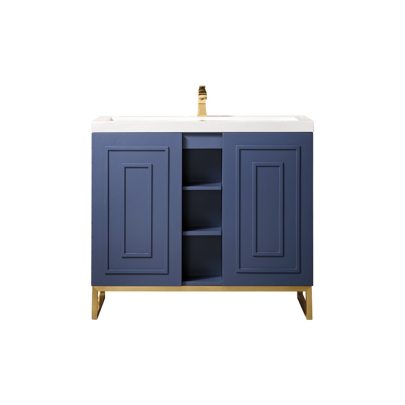 -The Alicante’ bath vanity by James Martin Vanities measures 39.4 in. W x 15.6 in. D x 35.5 in. H, providing ample storage space for your bath space