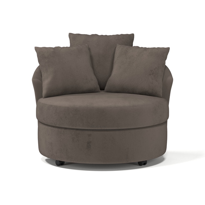 This barrel chair brings a round and inviting silhouette to your living space. Made in the USA with a wood frame, it rests on low-profile feet with a black finish. Boasting a classic barrel shape, it features a rounded back that curves around its sides to act as arms. This chair is upholstered in the fabric type and hue of your choice, blending in seamlessly with your surrounding design scheme. It features removable cushions for easy cleaning, and it comes with three included toss pillows for a curated look. Andover Mills Fabric: Bulldozer Pewter