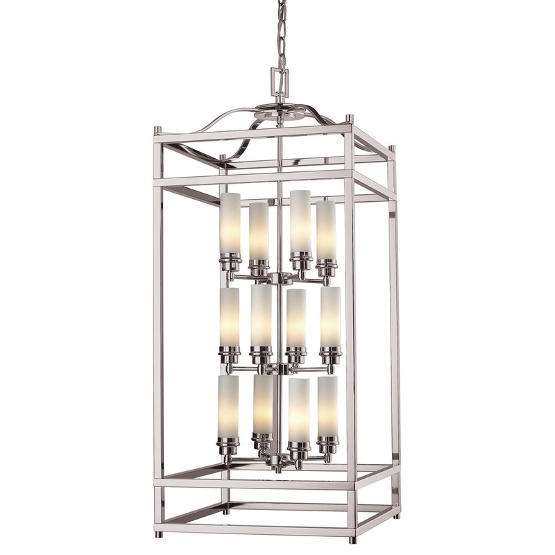 With a sleek brushed nickel finish, this twelve light chandelier uses matte opal cylinder shades to create a cutting edge look. Elegant uncluttered appeal with clean lines complete a modern look, making this fixture perfect for any contemporary setting.