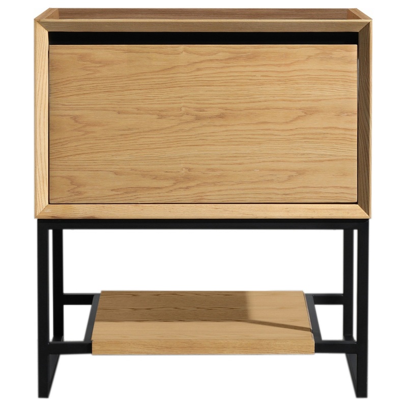 Alto 30 – California White Oak Cabinet313SMR-30CO Alto 30 – California White Oak Cabinet Elevate your space with the Alto Collection! This vanity will bring the New York penthouse vibe to your house. Its straight, simplistic lines and open bottom concept the Alto collection offers elegance with a modernistic approach. The optional open bottom shelf can be removed so the vanity can be both wall mounted or with legs to fit any bathroom design. The matte black, powder coated steel legs and black paint above the drawer offers contrast and sheik style. Additionally, the handless drawer design is embedded within an inner beveled frame. All this is accompanied with soft closing rails, dovetail construction drawers, and solid oak wood frame. Make the Alto collection the statement piece in your bathroom!