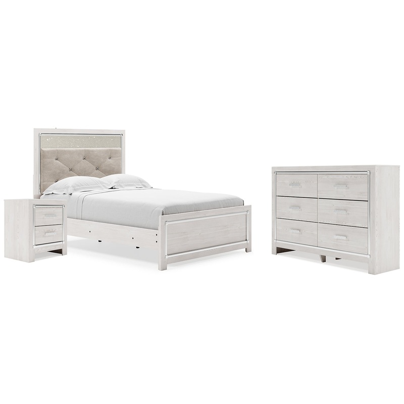 Altyra Full Upholstered Panel Bed, Dresser and Nightstand