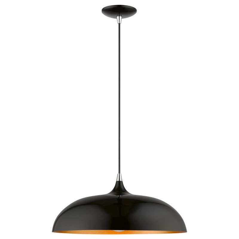 The Amador one light pendant features a modern, minimal look. It is shown in a chic shiny black finish shade with a gold finish inside and polished chrome finish accents. -Bulb Wattage: 60 -Number of Bulbs: 1 -Type of Bulb: Medium Base -Bulbs Included: NPr