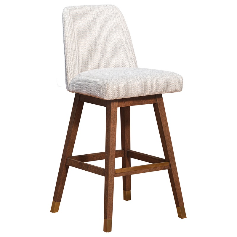 The classic style of the Amalie Bar or Counter Stool in Wood with Fabric Upholstery is available in multiple color choices. This kitchen barstool makes a beautiful addition to any home or apartment. Counter or bar height stools are an easy upgrade to make if you?re remodeling or an easy fix if you?re moving and haven?t purchased your dining room furniture yet. The Amalie counter or bar height stools feature a sturdy wood 4 leg base constructed from rubberwood. Rubberwood is a durable hardwood belonging to the maple family. Its dense grain character makes it a stable construction material that is naturally resistant to fungus and bacteria. The polyester upholstery really helps these wood bar stools stand out. The long-term durability of polyester makes it an ideal choice of stool upholstery fabric for families with children and pets. Polyester upholstery is water repellent, stain resistant, budget friendly, and less prone to discoloration. The soft upholstery of this swivel bar stool creates a convenient combination of comfort and function. The Amalie stool features grey or taupe options in boucle fabric. The fuzzy nature or boucle? means its pairs perfectly with curved or rounded pieces like asymmetrical sofas, armchairs, and of course the Amalie bar stool. The 180-degree memory swivel or ?spin-back? seat allows you to swivel either way and the seat always returns to forward facing position when you stand up. The Amalie stool is available in your choice of a 26 inch or 30 inch seat height and comes in a grey oak wood finish with boucle grey or mocha upholstery or a brown oak wood finish with boucle taupe or beige fabric upholstery.