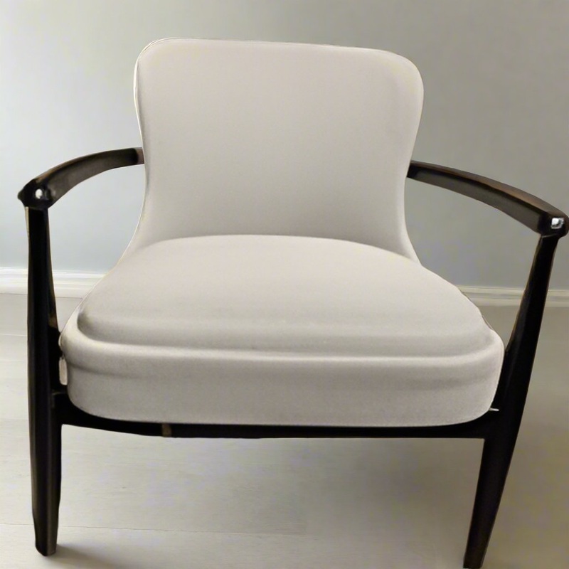 The Amara Arm Chair boasts a modern design, highlighted by its clean lines and stylish black wooden legs. The soft, upholstered seat and backrest provide exceptional support, making it perfect for lounging, reading, or entertaining guests.