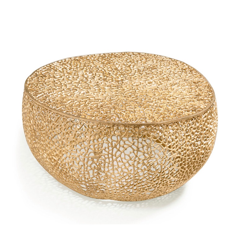 This Coffee Table with a unique contemporary circular design with a cellular, organic coral pattern. A fun coffee table with a flat top surface to place your favorite decor, the unique pattern goes around the sides. Rosecliff Heights Color: Gold