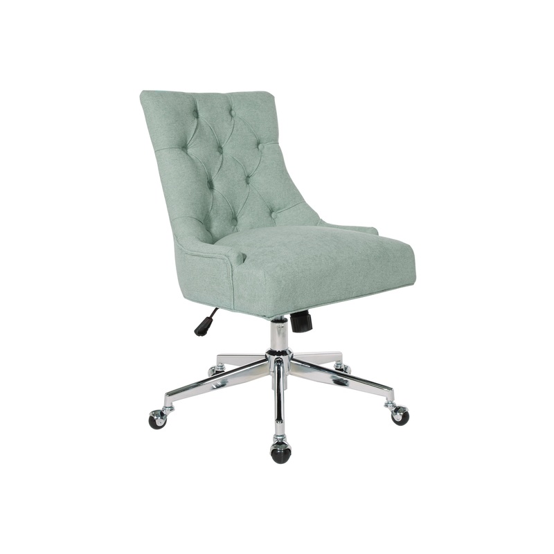 Chic office chair Classic back button tufting. Sturdy steel base with chrome finish For residential use only Model # (MPN)AME26-E15Product ID143462138Manufactured ByOffice Star ProductsSold ByHouzzSize/WeightW 21.88" / D 27.25" / H 39.5" / 31 lb.ColorMintM