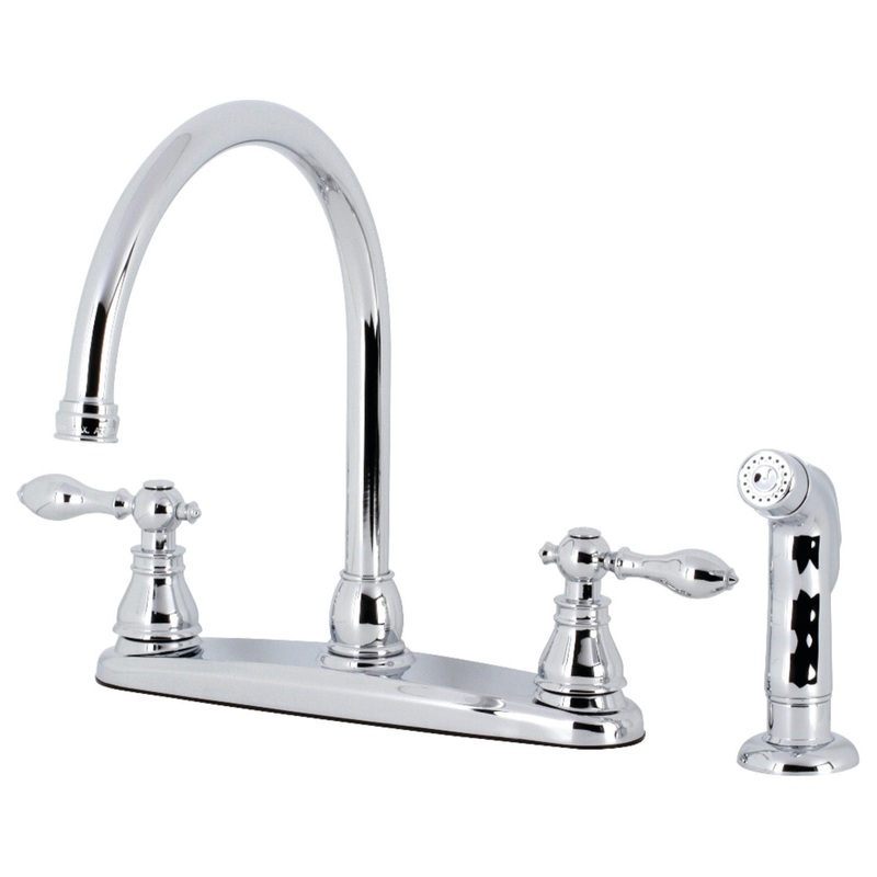 This faucet is perfect for those seeking inspiration from the exquisite artistry and architecture of the traditional Victorian era. Easily adaptable to any style, centerset faucets are admired for their single unit and ease of installation. Allow the polished chrome finish of this particular faucet to bring a glistening elegance to your kitchen. A sturdy brass construction and swivel abilities make for a reliant and long lasting fixture. Utilize the included matching finish side-sprayer for convenience in cleaning hard-to-reach areas.