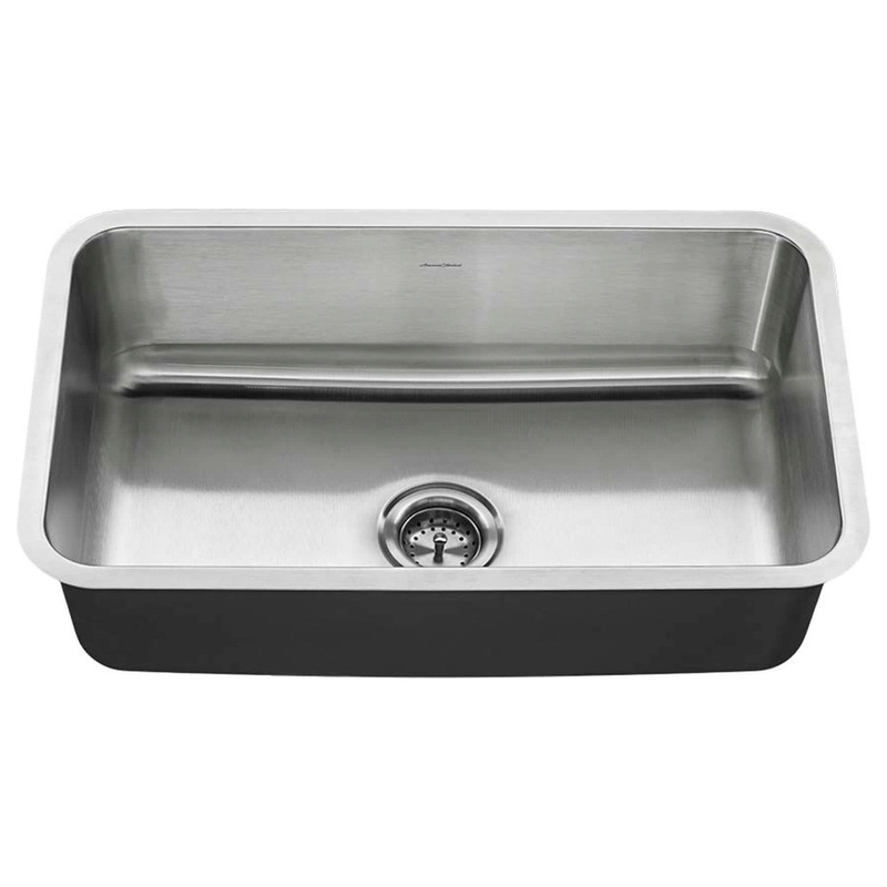 American Standard 18SB.9301800T Features: Made of 18 gauge stainless steel Undermount installation Single basin design provides maximum workspace Sound absorbing pads prevents dish clatter and undercabinet condensation Includes drain fitting with strainer