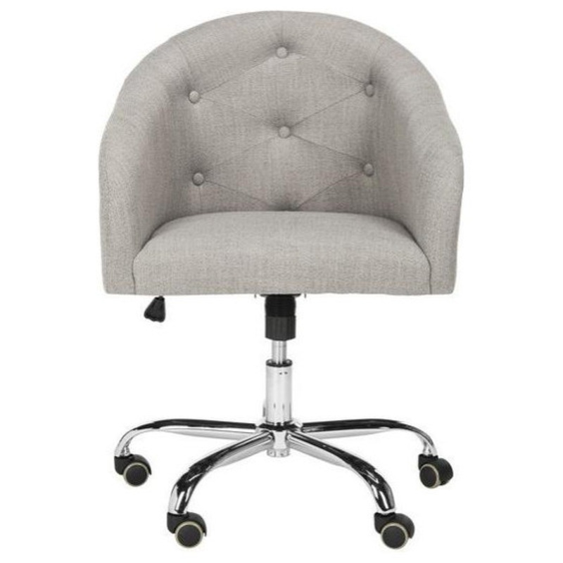 The ultimate office perk, this tufted grey linen chrome leg swivel office chair was designed to add style and substance to the home office. Inspired by soft, modern Belgian style, its innovative swivel mechanism and sleek casters make multi-tasking a breez
