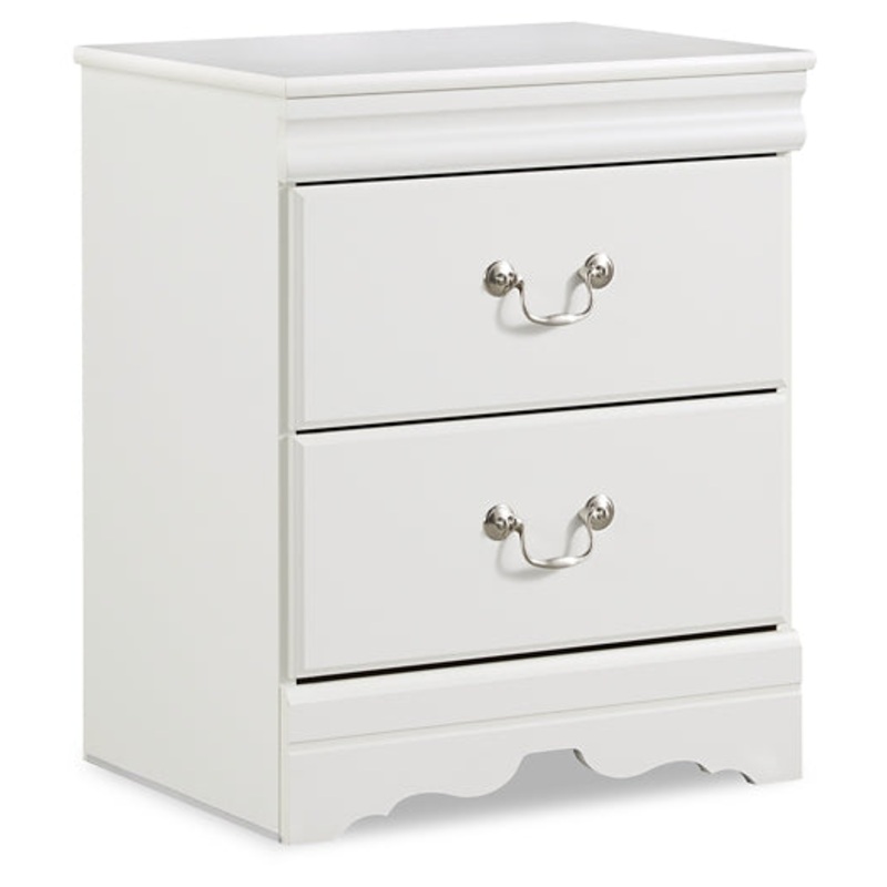 This nightstand's crisp cottage white gives traditional Louis Philippe profiling a delightful style awakening. The look is timeless. The feel? Right at home. Two smooth-gliding drawers with antiqued bail pulls beautifully accommodate.Made of engineered woo