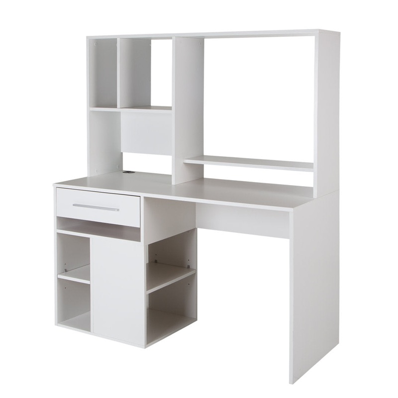 Need a hand organizing your workspace? This desk, with its many compartments, gives you a world of options for putting things away more easily. The hutch was designed to hold a computer screen, which will free up your workspace. It has 3 open spaces and a shelf, so you can organize all your materials and also put a printer under the shelf. Under the desk are 5 open spaces, where you can keep binders, notebooks, papers, and books. Theres also a small drawer for keeping anything that doesnt have a home out of sight. Finally, weve added a hole for passing cords through, along with 4 USB ports, for simple, efficient cord management. Youll get your work done more quickly than before and youll find youve never been so motivated! Add this Contemporary style computer desk to your office to give it an elegant, professional look. We like the long metal handle, which adds a touch of character. This desk also has so many storage shelves, you can personalize it by adding some decorative items or framed pictures. When youre not working, the kids can use it to do their homework or DIY projects. Add this Contemporary style computer desk to your office to give it an elegant, professional look. We like the long metal handle, which adds a touch of character. This desk also has so many storage shelves, you can personalize it by adding some decorative items or framed pictures. When youre not working, the kids can use it to do their homework or DIY projects. South Shore Color: White