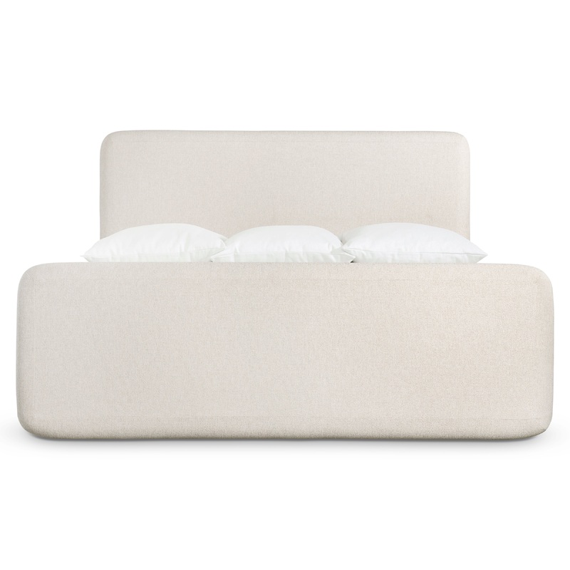 The Antibes panel bed is formed with rounded and lushly upholstered panels for the headboard and footboard. Connected by upholstered side panels, the bed has a calm and serene organic style. The bed can be customized with other fabric options.