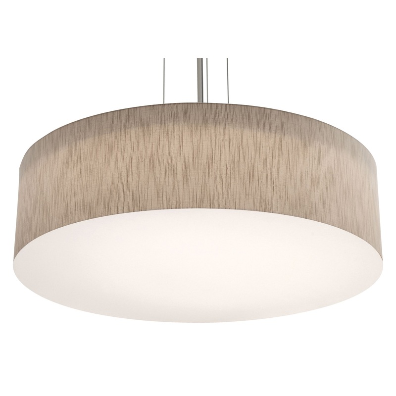 Modern single drum pendant features LumaFuse laminated fabric/acrylic shade that is durable and easy to clean. White bottom acrylic diffuser disperses the light evenly. Available in five sizes and two finishes. Features - -0-10V (120-277V) & TRIAC/ELV (120