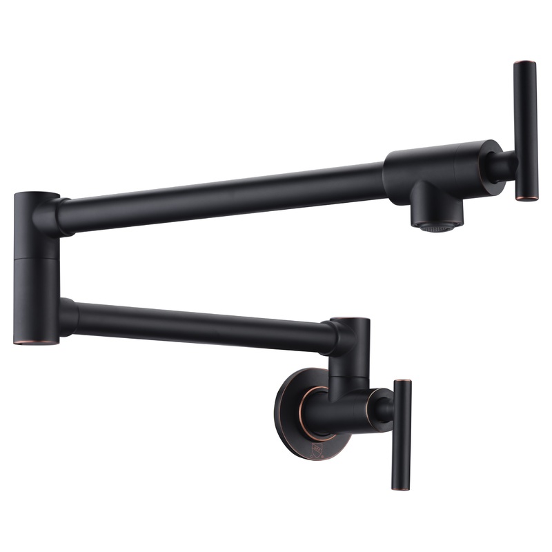 The ANZZI Braccia Series wall mounted pot fillers perfectly blend todays modern design and reliability with classical elegance and grace. The featured dual pivot joint allows for maximum reach and positional flexibility ensuring the 2.5 gpm spout is always positioned exactly where you need it to be. The strategic double water valve system also for initial water flow activation at the base along with convenient water flow control on the spout itself. Built using RHINO ALLOY certified steel and brass the Braccia Series pot filler kitchen faucet delivers reliable durability, convenient articulation and long-lasting performance. Additional Product Information: Collection: Braccia Series Item Finish: Oil Rubbed Bronze Product Height (inches): 8.5 Product Length (inches): 24 Product Width (inches): 14 Weight (lbs.): 2 Feature 1: Solid brass interior for superior strength and reliability Feature 2: Classical oil rubbed bronze finish Feature 3: Single hole, wall mounted installation Feature 4: Two handle, dual shut-off valve system for independent water flow control Feature 5: Dual joint offers complete positional control and flexibility Feature 6: 360 degree swivel range at each joint for maximum maneuverability Feature 7: Flow rate: 2.5 gpm Feature 8: No thermostatic water mixing, cold water only Feature 9: Total spout reach of 24″ Feature 10: Ships from warehouse within 24 hours of order processing Feature 11: ANZZI Lifetime Warranty Specs: Specs & Dimensions Manual / Instructions: Manual & Installation Care Guide: Care Guide Warranty: Warranty