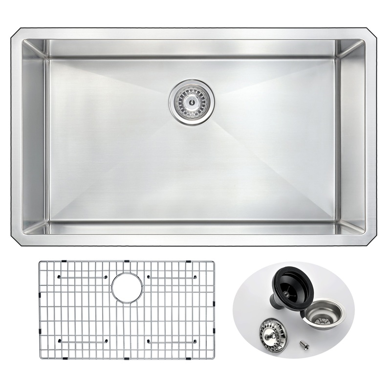 ANZZI presents the 32 inch VANGUARD SERIES hand crafted under mount kitchen sink. Representing the latest in modern home fixture designs and traditional European crafting technique this stunning display of artistry is hand shaped to perfection using RHINO ALLOY certified 18 gauge 304 stainless steel. Only ANZZI hand crafted kitchen sinks utilize RHINO ALLOY certified materials for superior strength and quality. The cavernous deep soaking basin will comfortably accommodate the largest dish loads including pots, pans and more. And every ANZZI sink features the largest Echo-STOP sound dampening pads available and a layer of protective composite coating to further quiet noise and prevent condensation. Well defined diversion lines ensure quick and total water drainage and the subtly curved corners allow of easier cleaning. ANZZI carries a proud tradition of crafting long lasting, quality home fixtures. With ANZZI perfection is our tradition.