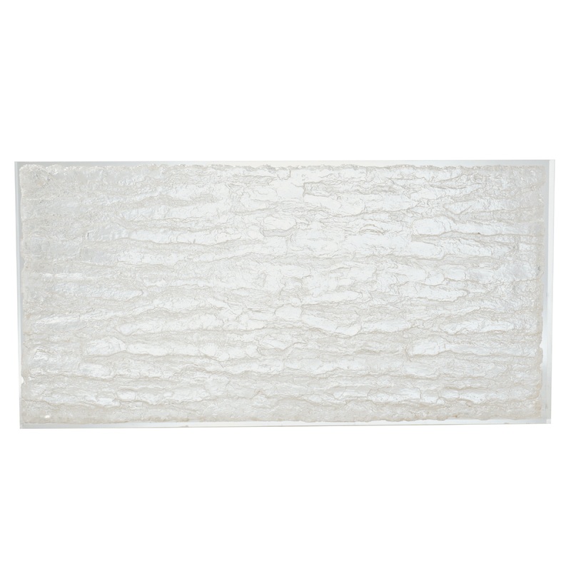 Rectangular cocktail table.Solid acrylic top with cast wood grain pattern.Polished stainless steel base with stretchers.Adjustable glides.Bernhardt Interiors offers high-design furniture with an eclectic edge. The chic and modern Arctic cocktail table feat